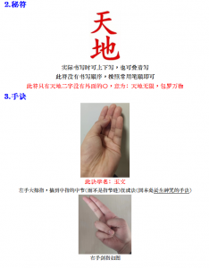 左手掐诀的同时嘴巴念咒,并在脑海里似有似无的观想前叙天地符。